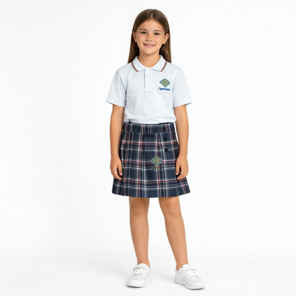 Falda escolar de cuadros, solamente la talla 8 e inferiores tienen tirantes.