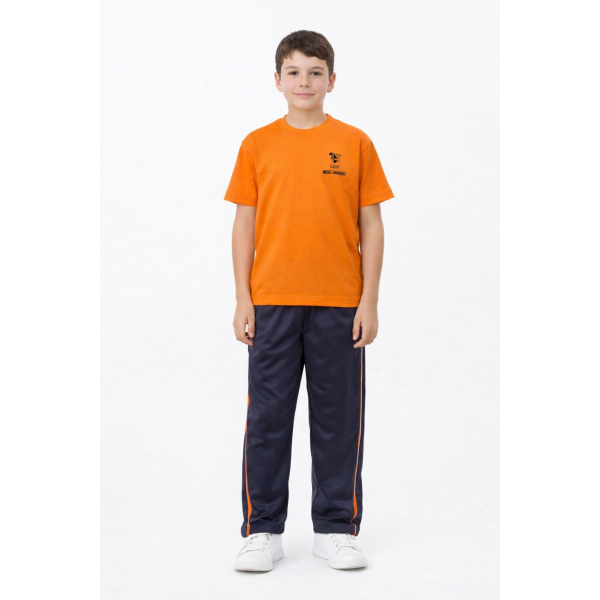 Se combina con la camiseta deportiva naranja de manga corta.