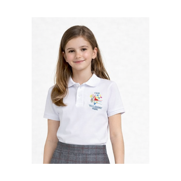 El escudo del colegio va bordado en la parte superior izquierda del polo.